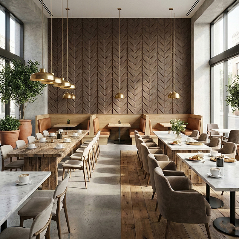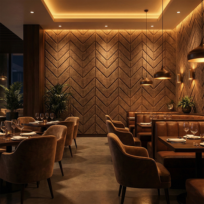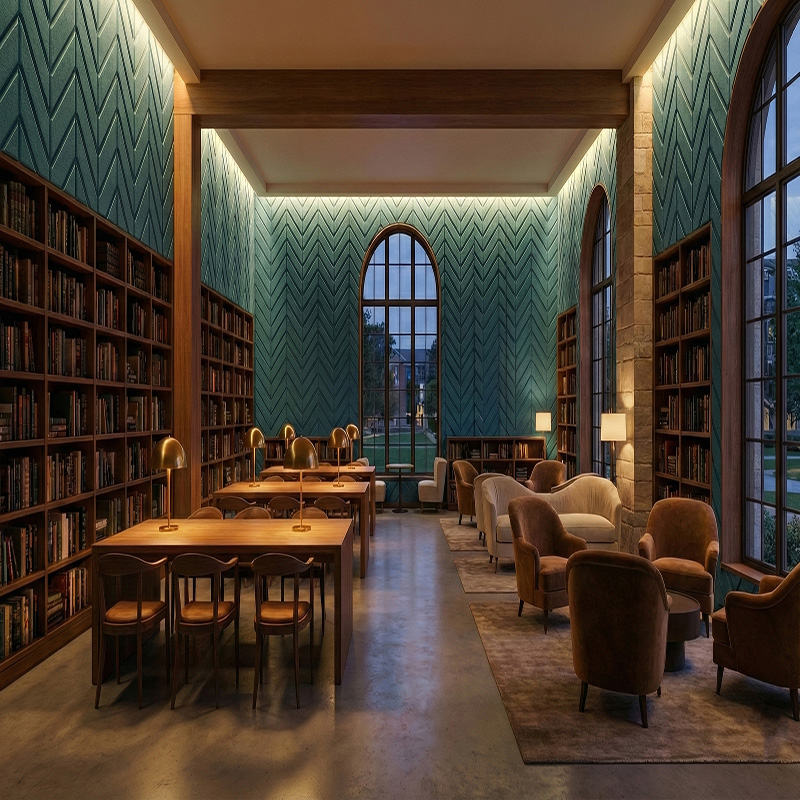 These panels act as high-quality sound absorbing wall panels with an NRC rating of 0.8–0.95. Consequently, they reduce background noise and improve speech clarity. Designers often use these modern acoustic wall panels in spaces where focus and comfort matter.
