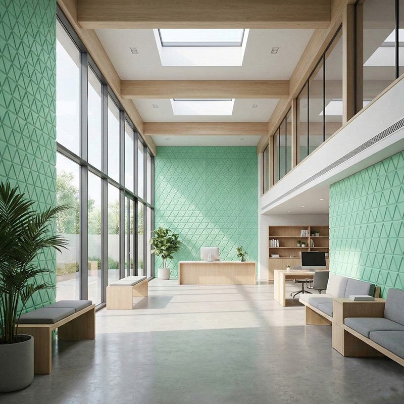 With an NRC rating of 0.8–0.95, these sound absorbing wall panels reduce echo and unwanted noise. Consequently, they improve speech clarity and listening comfort. Offices, classrooms, and meeting rooms benefit from a more balanced sound environment.