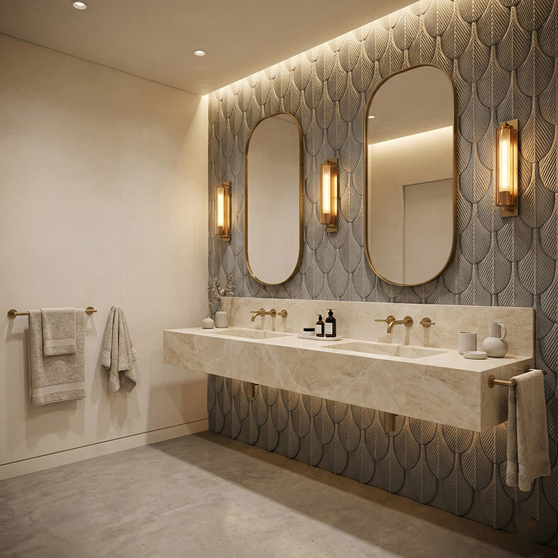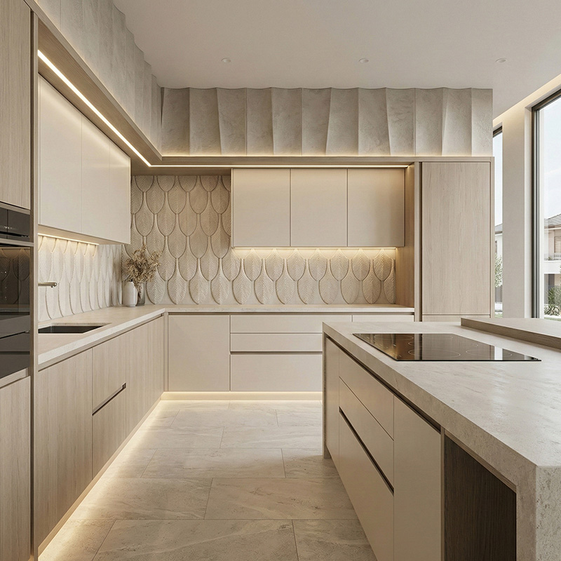 These panels are suitable for kitchens, dining rooms, living areas, offices, hotels, and retail interiors. Additionally, they provide a refined alternative to traditional cinder block wall designs. Whether applied as a feature wall or a full surface treatment, they create elegant and expressive spaces.