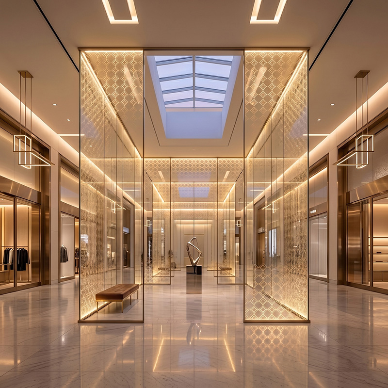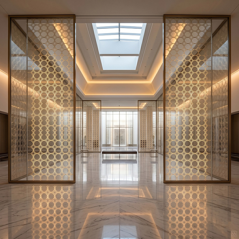 GLASMETRA laminated glass panels are engineered for strength, safety, and long-term performance. Furthermore, they offer excellent light diffusion, making them perfect for backlit glass panels that create a soft ambient glow. Despite allowing light to pass through, they maintain privacy, making them suitable for both residential and commercial applications. Consequently, they are widely used as glass divider panels and glass feature wall panels in offices, hotels, and modern homes.