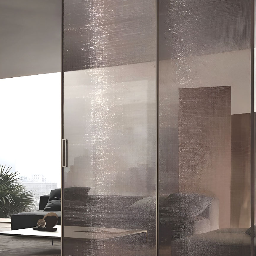 This innovative laminated wire mesh glass panel combines the clarity of glass with the texture and strength of finely woven or etched metal mesh. Crafted from stainless steel, brass, copper, or aluminum, the embedded mesh not only enhances visual appeal but also serves as a safety reinforcement.