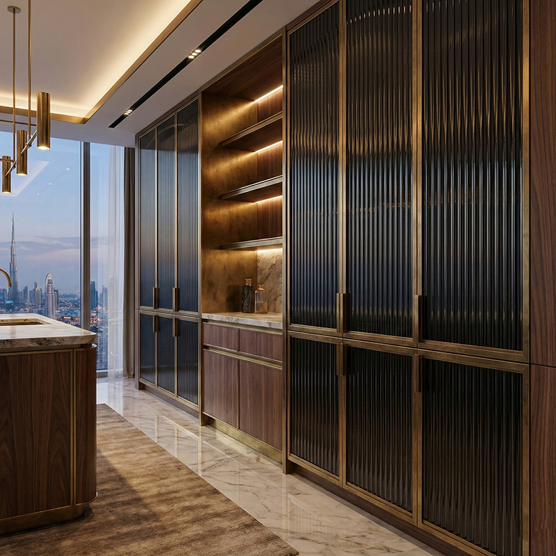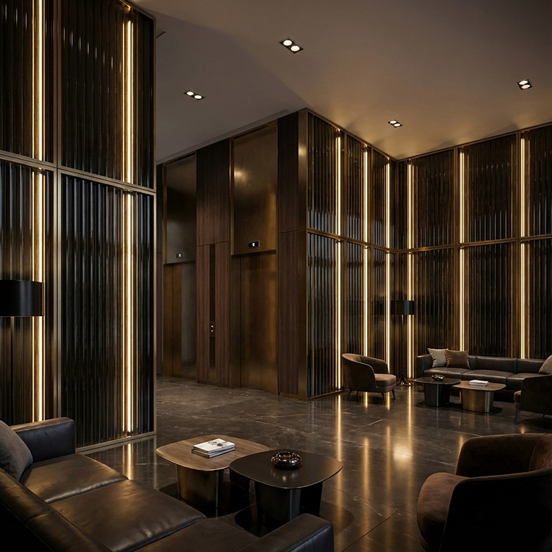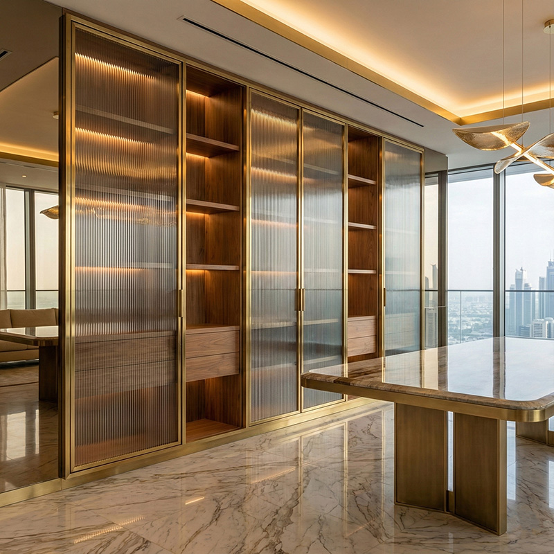 GLASMETRA CFFFGP Finis Fluted Glass Panel is ideal for projects requiring  laminated decorative glass with style and performance. It offers a refined balance of privacy, light control, and durability. Therefore, it is a smart choice for architects and designers seeking long-lasting visual impact.