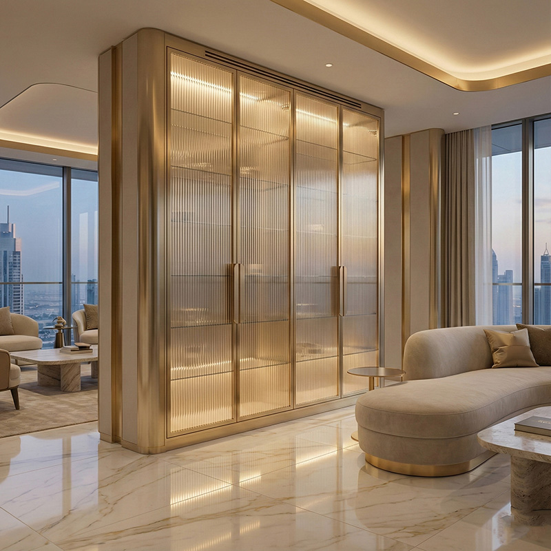 In addition, this decorative glass fluted glass design revives classic architectural styles. However, it still feels modern and refined, making it suitable for contemporary spaces.
