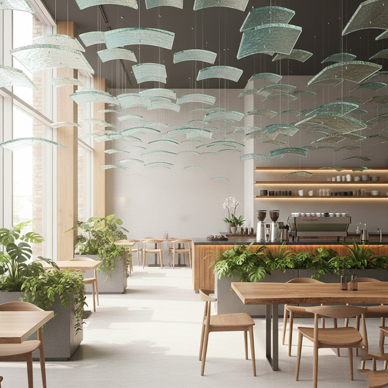 - Hospitality interiors such as cafés, restaurants, and hotels