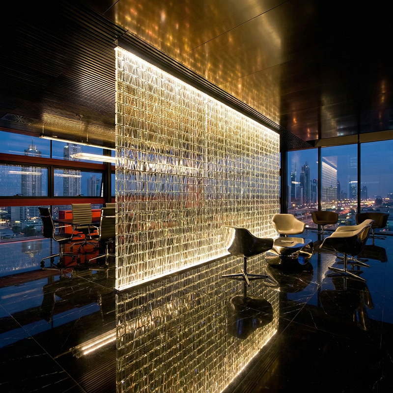 - Decorative glass wall tiles in offices and hotels
