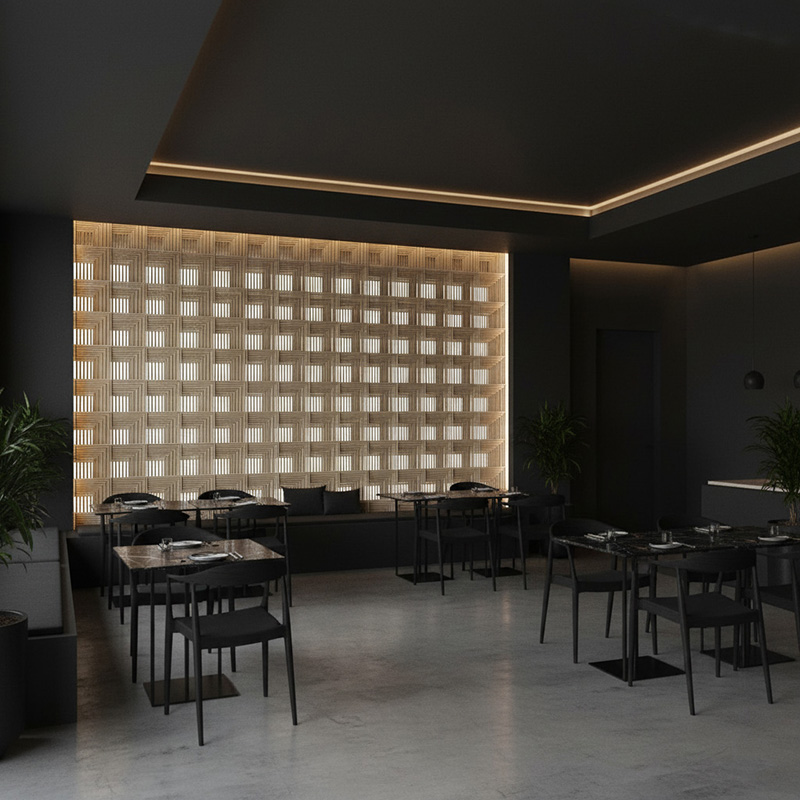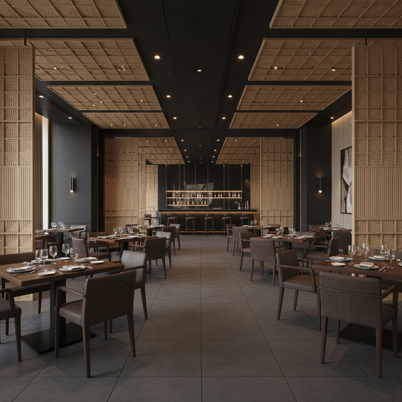 The panels require simple care. As a result, they fit hotels, villas, restaurants, lounges, and outdoor walkways. In addition, the corner-weave texture creates a bold visual effect without feeling heavy.