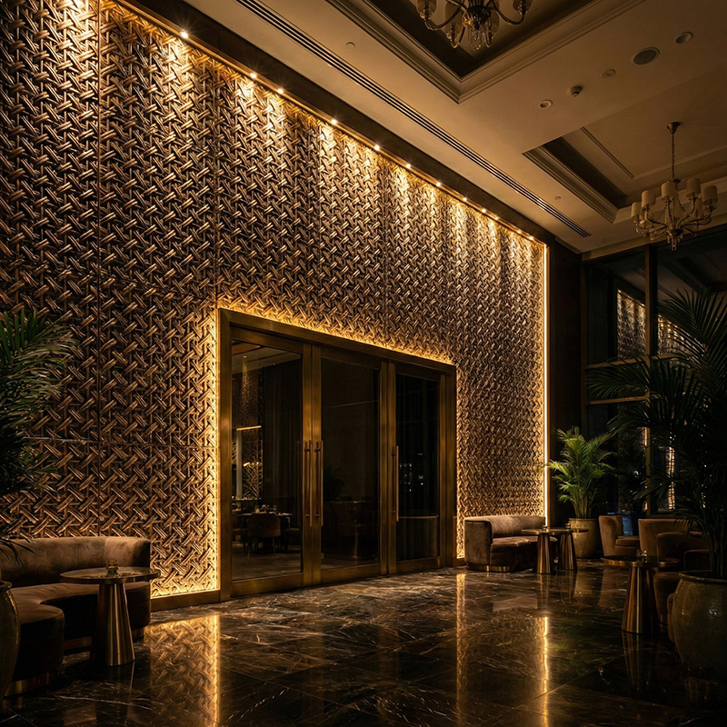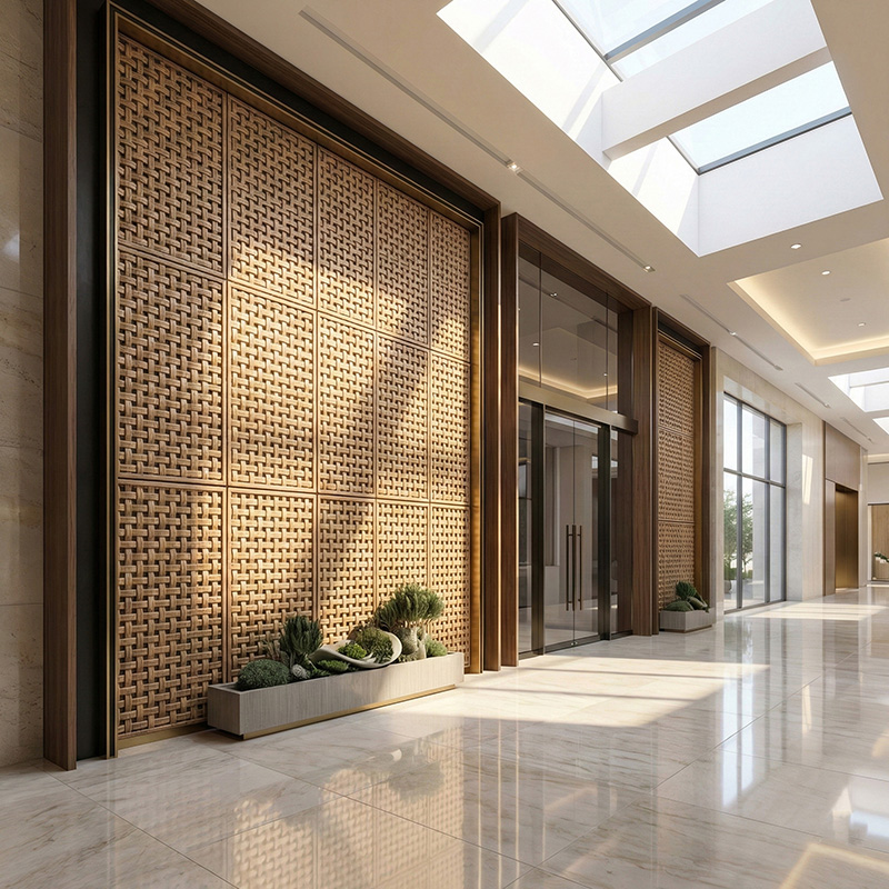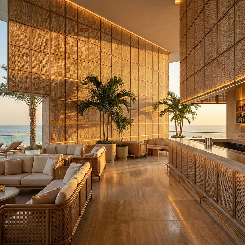 RATTANA – P7DCP is a smart choice for designers and architects. It offers the natural look of rattan with the strength of HDPE. In addition, it is easy to install and maintain. Therefore, it provides lasting beauty and reliable performance for modern interior wall cladding projects.