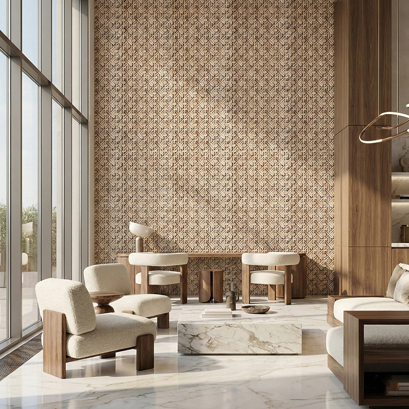 RATTANA – P7DCP Diagonal Cross Synthetic Rattan Panel is a premium 3D woven wall panel made for modern interiors. It features a bold diagonal cross pattern. As a result, it adds depth and warmth to any space. This decorative synthetic rattan cladding is ideal for both homes and commercial projects.